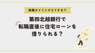 この記事では、第四北越銀行で転職直後に住宅ローンを借りる際の提出書類や注意点を書いています。これから第四北越銀行で住宅ローンを借りる予定だけど、転職タイミングはどうしたらいいんだろう…第四北越銀行は転職直後でも住宅ローンを借りられるの?そんな疑問を解消できる内容になっているので、ぜひ最後まで読んでもらえたら嬉しいです。