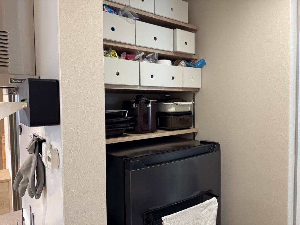 また、動線的にもキッチンで出たゴミをそのまま動かずに捨てることができるので、この位置を開けてもらって良かったなと日々実感しています。