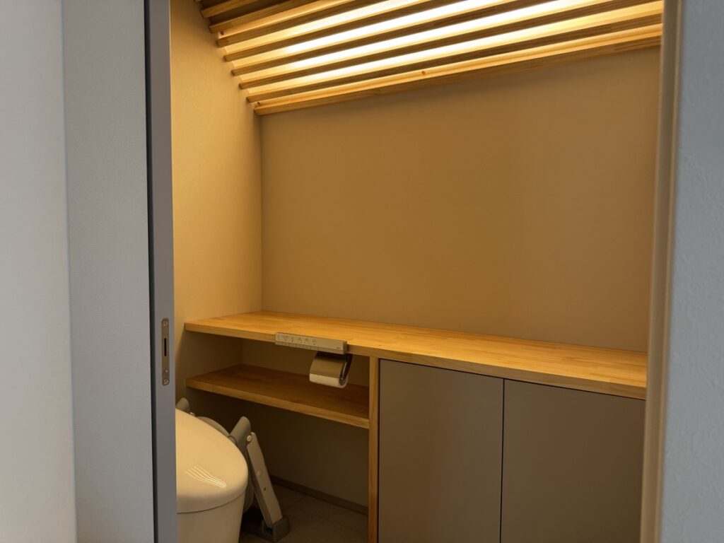 ちなみにトイレはワーロンという素材で造作で照明を作ってもらい、ジャパンディのスタイルに合うトイレに仕上がっています。