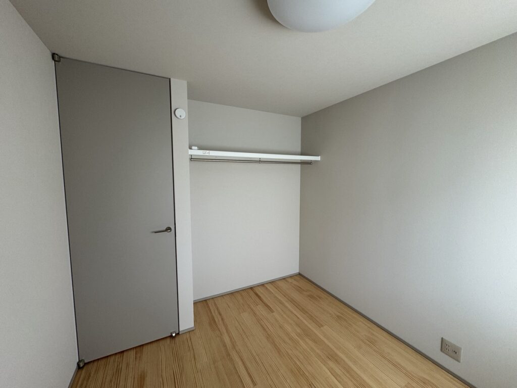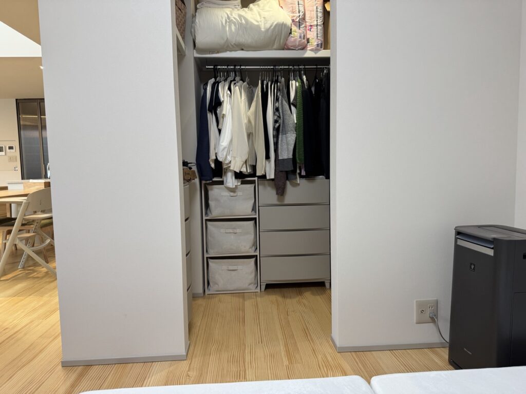 小さいですが、ウォークインクローゼットも設けており、衣服や大きいものでも収納できるようにしました。