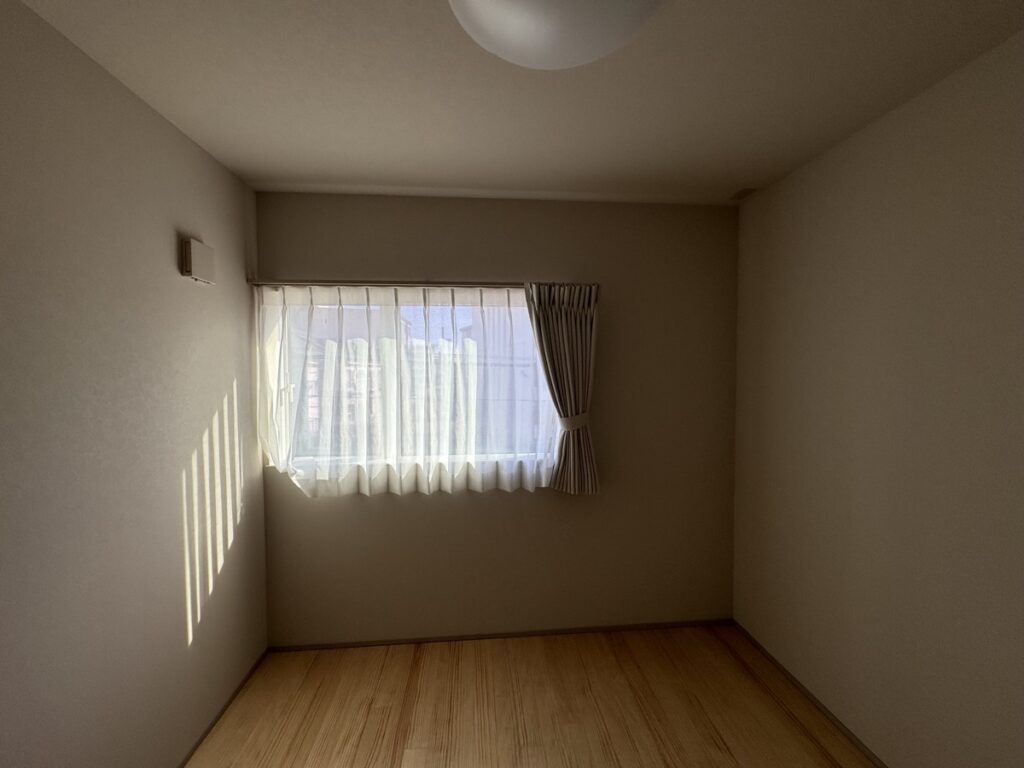 子供が出て行った後のことも考えて、大きい1つの部屋にしようか悩んだのですが、最初から壁で仕切り、それぞれのプライベートが守られるように2部屋にしました。