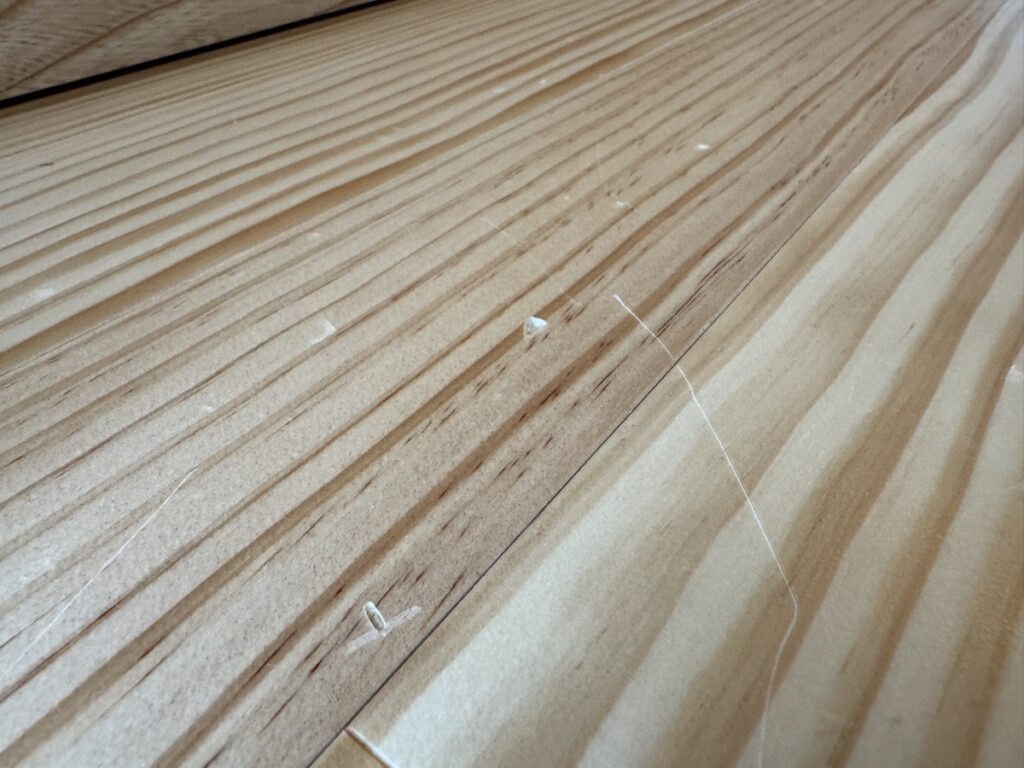 無垢床だとある程度は自分で修復できたりするのですが、まだまだ頻繁に傷つけそうなので、子供が大きくなってからまとめて修復してみようかなと考えています。
