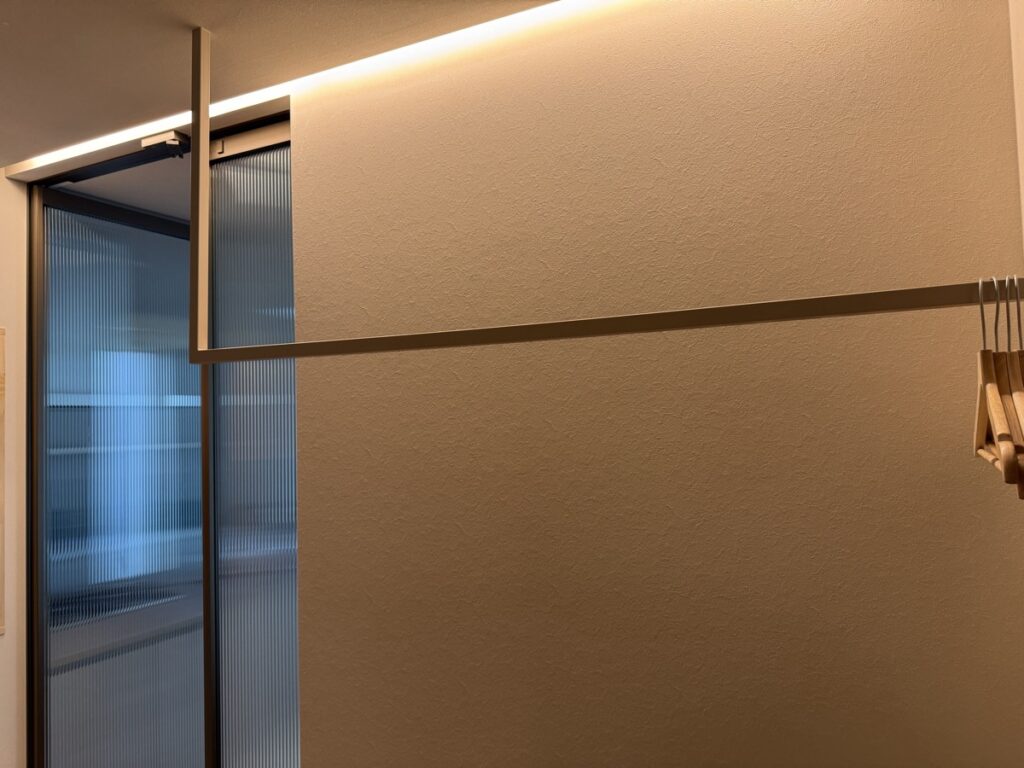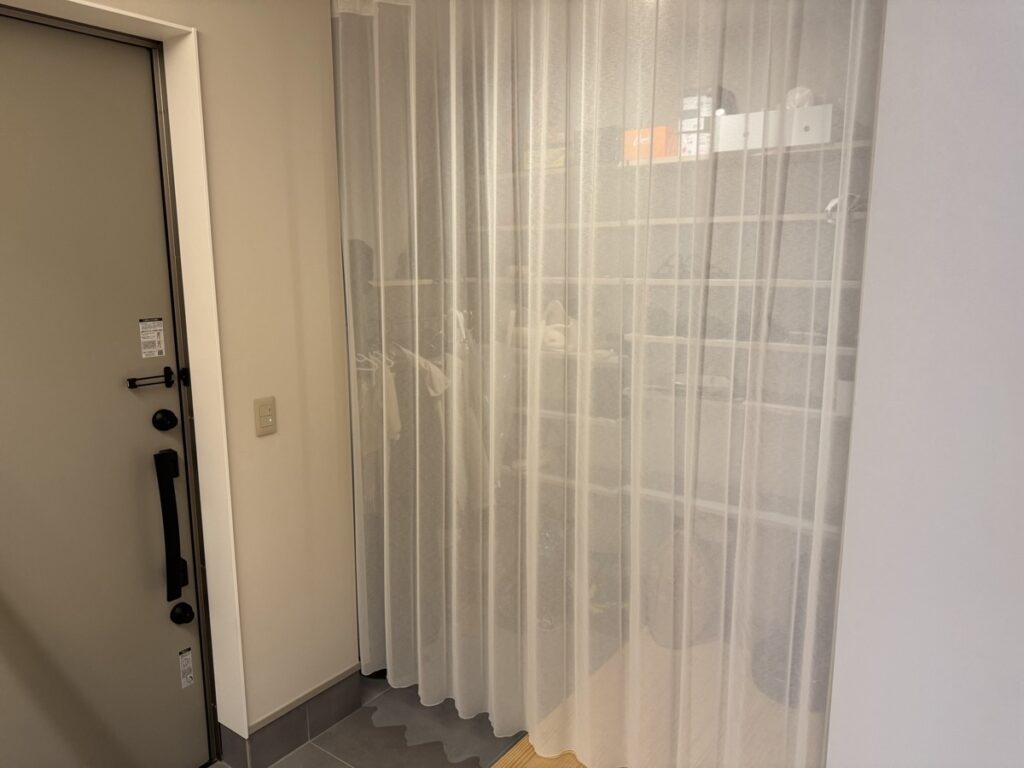 普段はカーテンを寄せておけば、広く玄関が使えるので、仕切り壁などは設置しなくても正解だったな〜と使いながら感じています。